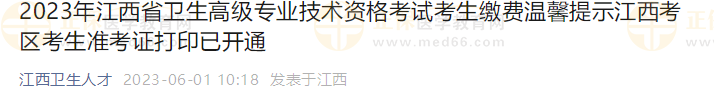 江西衛(wèi)生人才發(fā)布2023年江西省衛(wèi)生高級專業(yè)技術(shù)資格考試考生繳費(fèi)溫馨提示江西考區(qū)考生準(zhǔn)考證打印已開通通知,醫(yī)學(xué)教育網(wǎng)整理具體內(nèi)容如下: