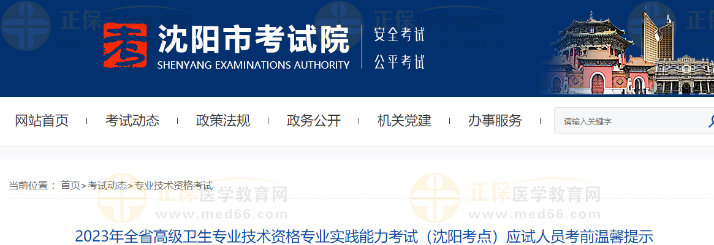 沈陽市考試院發(fā)布2023年全省高級衛(wèi)生專業(yè)技術(shù)資格專業(yè)實踐能力考試(沈陽考點)應(yīng)試人員考前溫馨提示,醫(yī)學(xué)教育網(wǎng)整理具體內(nèi)容如下: