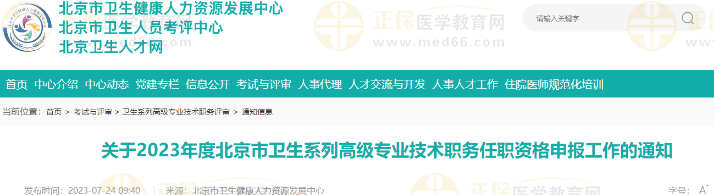 北京衛(wèi)生人才網(wǎng)發(fā)布關(guān)于2023年度北京市衛(wèi)生系列高級專業(yè)技術(shù)職務(wù)任職資格申報(bào)工作的通知,醫(yī)學(xué)教育網(wǎng)整理具體內(nèi)容如下: