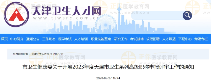 按照《市人社局關(guān)于開展2023年度職稱評審工作的通知》(津人社辦函〔2023〕355號)要求,現(xiàn)就做好2023年度衛(wèi)生系列高級職稱評審工作通知如下: