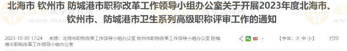 北海市 欽州市 防城港市職稱改革工作領(lǐng)導(dǎo)小組辦公室關(guān)于開展2023年度北海市、欽州市、防城港市衛(wèi)生系列高級職稱評審工作的通知公布啦!醫(yī)學(xué)教育網(wǎng)整理具體內(nèi)容如下: