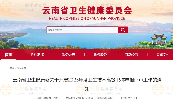 云南省衛(wèi)生健康委關(guān)于開展2023年度衛(wèi)生技術(shù)高級(jí)職稱申報(bào)評(píng)審工作的通知公布啦!醫(yī)學(xué)教育網(wǎng)整理具體內(nèi)容如下: