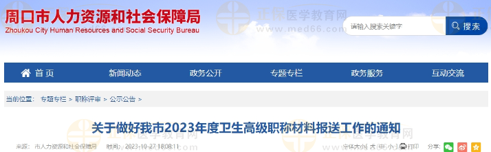 周口市人力資源和社會(huì)保障局發(fā)布關(guān)于做好我市2023年度衛(wèi)生高級(jí)職稱材料報(bào)送工作的通知,醫(yī)學(xué)教育網(wǎng)整理具體內(nèi)容如下: