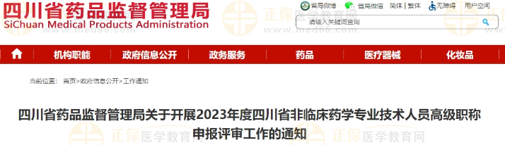四川省藥品監(jiān)督管理局關(guān)于開展2023年度四川省非臨床藥學(xué)專業(yè)技術(shù)人員高級職稱申報(bào)評審工作的通知公布啦!醫(yī)學(xué)教育網(wǎng)整理具體內(nèi)容如下: