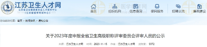 江蘇衛(wèi)生人才網(wǎng)發(fā)布關(guān)于2023年度申報(bào)全省衛(wèi)生高級(jí)職稱評(píng)審委員會(huì)評(píng)審人員的公示,醫(yī)學(xué)教育網(wǎng)整理具體內(nèi)容如下: