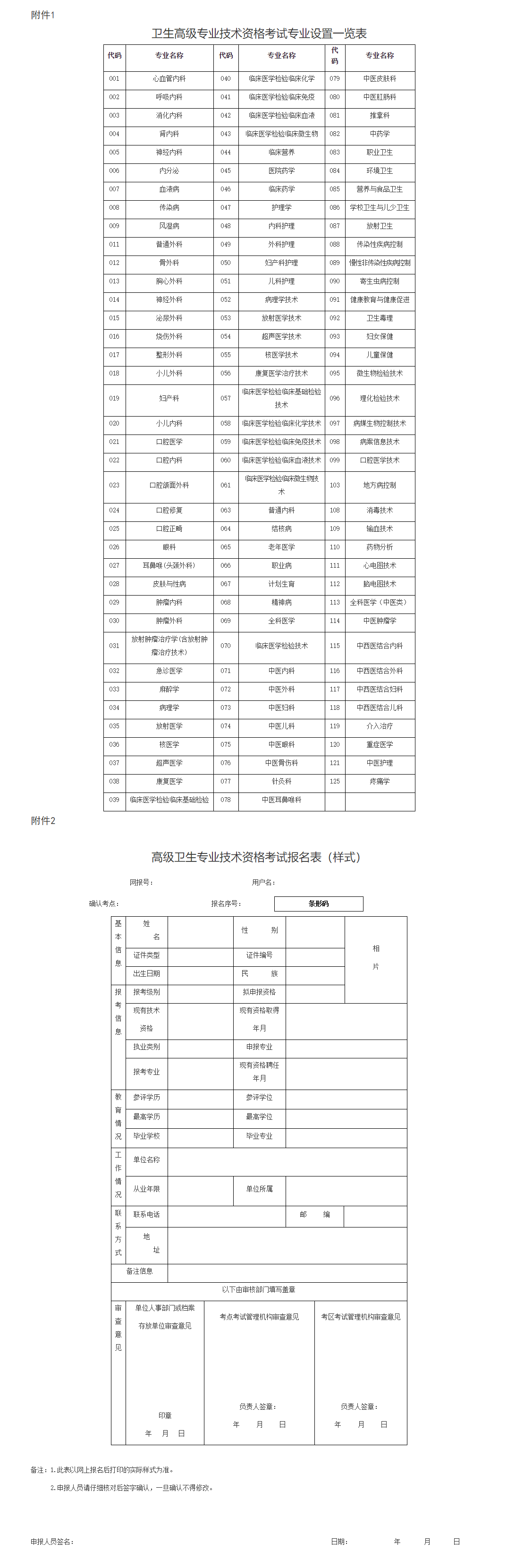 附件:1.衛(wèi)生高級專業(yè)技術(shù)資格考試專業(yè)設(shè)置一覽表