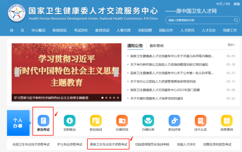 圖1:進(jìn)入國家衛(wèi)生健康委人才交流服務(wù)中心網(wǎng)站,進(jìn)入?yún)⒓涌荚嚒呒壭l(wèi)生專業(yè)技術(shù)資格考試