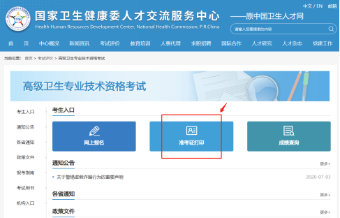 考生可在規(guī)定期限內(nèi),登錄國家衛(wèi)生健康委人才交流服務(wù)中心網(wǎng)站(www.21wecan.com),進(jìn)入“參加考試—高級衛(wèi)生專業(yè)技術(shù)資格考試—準(zhǔn)考證打印”,打印準(zhǔn)考證。
