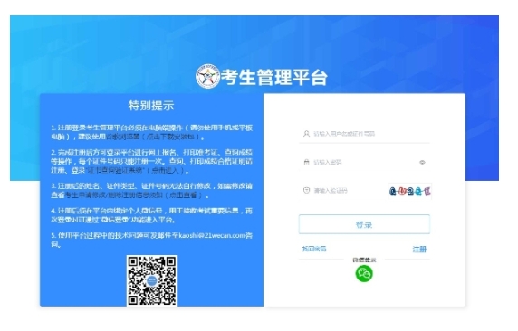 第二步:在考生管理平臺(tái),輸入正確的用戶名、密碼和驗(yàn)證碼(用戶名和密碼與報(bào)名時(shí)使用的一致),點(diǎn)擊“登錄”。如忘記密碼,可通過(guò)“找回密碼”方式重新取回。