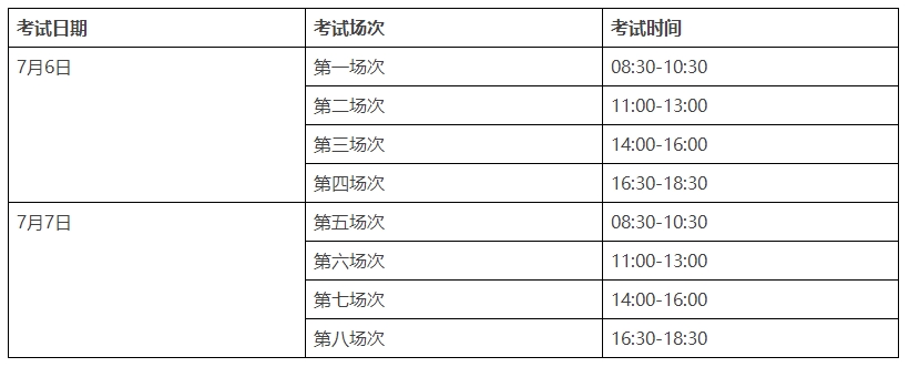 一、考試時間及場次安排
