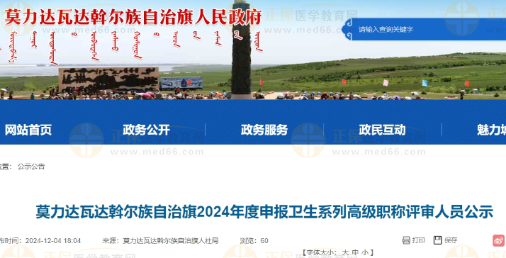 莫力達(dá)瓦達(dá)斡爾族自治旗2024年度申報(bào)衛(wèi)生系列高級(jí)職稱評(píng)審人員公示公布啦!醫(yī)學(xué)教育網(wǎng)整理具體內(nèi)容如下: