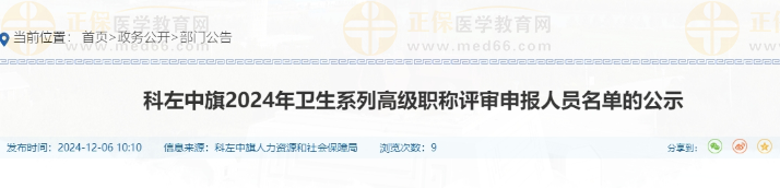 科左中旗2024年衛(wèi)生系列高級專業(yè)技術(shù)資格評審申報人員名單的公示