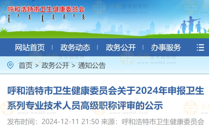 呼和浩特市衛(wèi)生健康委員會(huì)關(guān)于2024年申報(bào)衛(wèi)生系列專業(yè)技術(shù)人員高級(jí)職稱評(píng)審的公示公布啦!醫(yī)學(xué)教育網(wǎng)整理具體內(nèi)容如下: