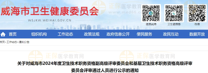關(guān)于對(duì)威海市2024年度衛(wèi)生技術(shù)職務(wù)資格副高級(jí)評(píng)審委員會(huì)和基層衛(wèi)生技術(shù)職務(wù)資格高級(jí)評(píng)審委員會(huì)評(píng)審?fù)ㄟ^(guò)人員進(jìn)行公示的通知公布啦!醫(yī)學(xué)教育網(wǎng)整理具體內(nèi)容如下: