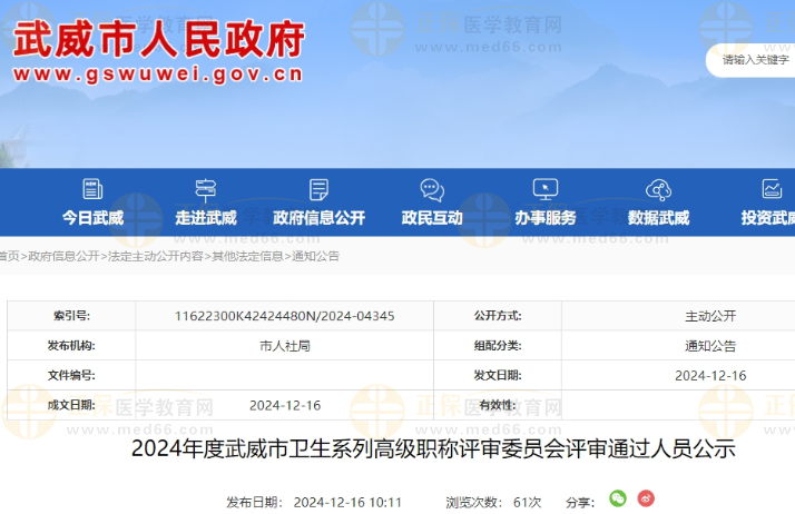 提示:因涉及用戶隱私問(wèn)題,醫(yī)學(xué)教育網(wǎng)不展示具體人員名單,請(qǐng)考生朋友移步武威市人民政府官網(wǎng)查看。