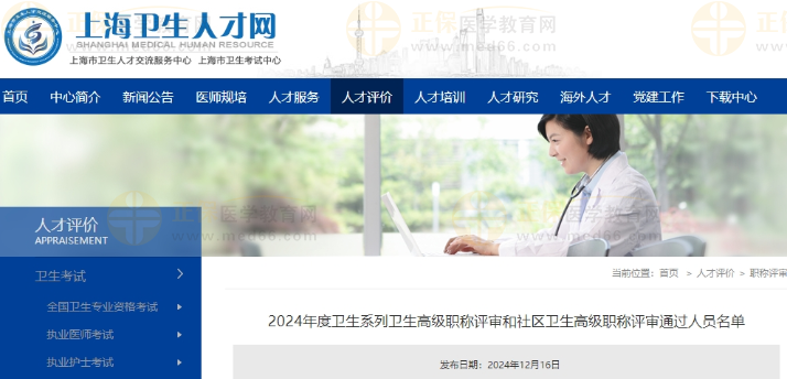 上海2024年度衛(wèi)生高級職稱評審和社區(qū)衛(wèi)生高級職稱評審通過人員名單公布啦!醫(yī)學教育網整理具體內容如下: