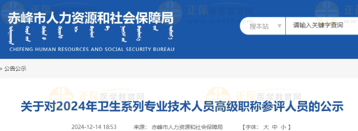 赤峰市關(guān)于對(duì)2024年衛(wèi)生系列專業(yè)技術(shù)人員高級(jí)職稱參評(píng)人員的公示公布啦!醫(yī)學(xué)教育網(wǎng)整理具體內(nèi)容如下: