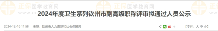 2024年度衛(wèi)生系列欽州市副高級職稱評審擬通過人員公示公布啦!醫(yī)學(xué)教育網(wǎng)整理具體內(nèi)容如下: