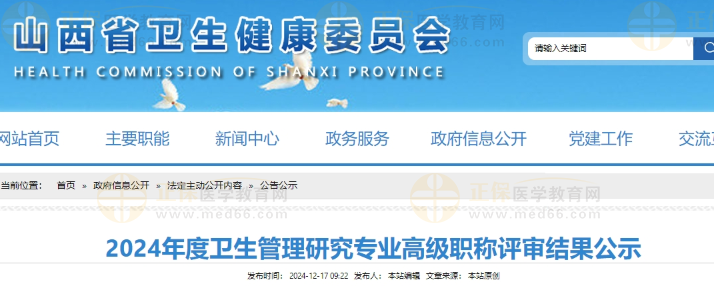 山西省2024年度衛(wèi)生管理研究專業(yè)高級職稱評審結(jié)果公示公布啦!醫(yī)學教育網(wǎng)整理具體內(nèi)容如下: