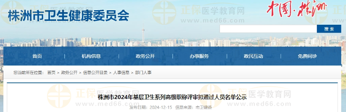 株洲市2024年基層衛(wèi)生系列高級(jí)職稱評(píng)審擬通過人員名單公示公布啦!醫(yī)學(xué)教育網(wǎng)整理具體內(nèi)容如下: