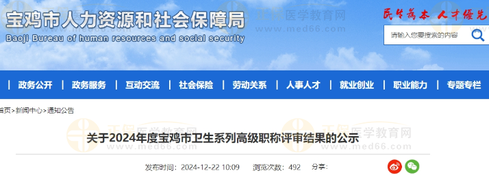 關于2024年度寶雞市衛(wèi)生系列高級職稱評審結(jié)果的公示公布啦!醫(yī)學教育網(wǎng)整理具體內(nèi)容如下: