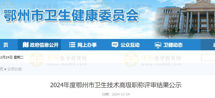 2024年度鄂州市衛(wèi)生技術(shù)高級職稱評審結(jié)果公示公布啦!醫(yī)學(xué)教育網(wǎng)整理具體內(nèi)容如下: