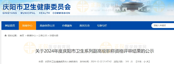 關(guān)于2024年度慶陽市衛(wèi)生系列副高級職稱資格評審結(jié)果的公示公布啦!醫(yī)學(xué)教育網(wǎng)整理具體內(nèi)容如下: