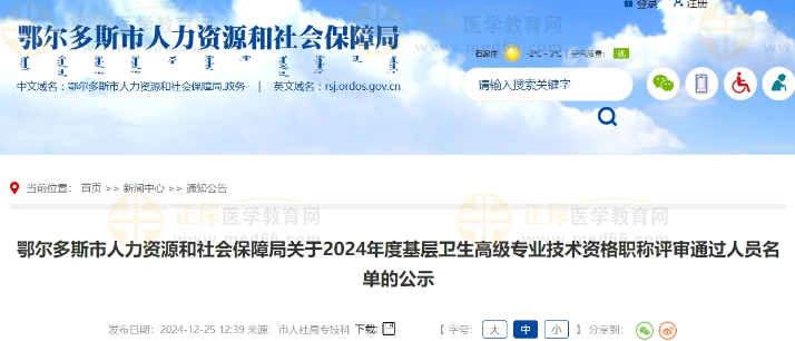 鄂爾多斯市人力資源和社會(huì)保障局關(guān)于2024年度基層衛(wèi)生高級(jí)專業(yè)技術(shù)資格職稱評(píng)審?fù)ㄟ^人員名單的公示公布啦!醫(yī)學(xué)教育網(wǎng)整理具體內(nèi)容如下: