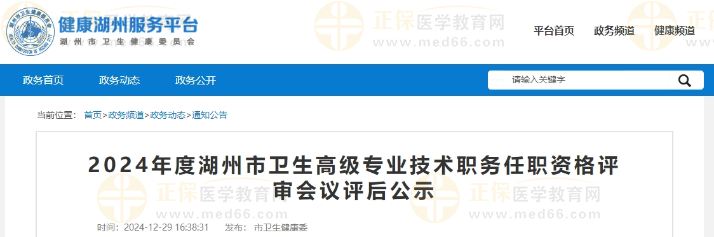 2024年度湖州市衛(wèi)生高級(jí)專業(yè)技術(shù)職務(wù)任職資格評(píng)審會(huì)議評(píng)后公示公布啦!醫(yī)學(xué)教育網(wǎng)整理具體內(nèi)容如下: