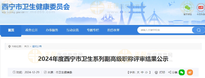 2024年度西寧市衛(wèi)生系列副高級(jí)職稱評(píng)審結(jié)果公示公布啦!醫(yī)學(xué)教育網(wǎng)整理具體內(nèi)容如下: