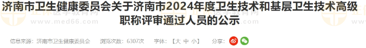 濟南市衛(wèi)生健康委員會關于濟南市2024年度衛(wèi)生技術和基層衛(wèi)生技術高級職稱評審通過人員的公示公布啦!醫(yī)學教育網整理具體內容如下: