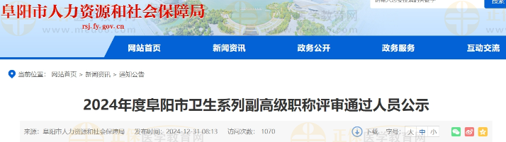 2024年度阜陽市衛(wèi)生系列副高級職稱評審?fù)ㄟ^人員公示公布啦!醫(yī)學(xué)教育網(wǎng)整理具體內(nèi)容如下: