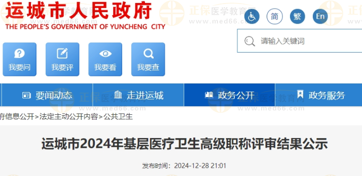 運城市2024年基層醫(yī)療衛(wèi)生高級職稱評審結(jié)果公示公布啦!醫(yī)學教育網(wǎng)整理具體內(nèi)容如下: