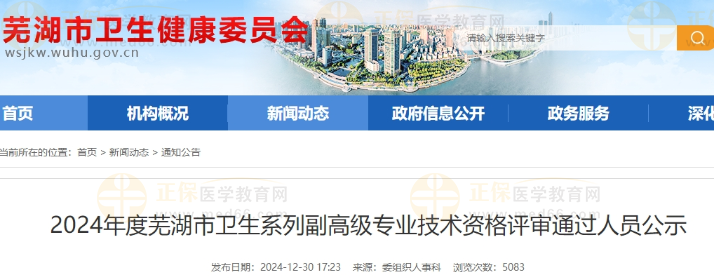 2024年度蕪湖市衛(wèi)生系列副高級專業(yè)技術(shù)資格評審?fù)ㄟ^人員公示公布啦!醫(yī)學(xué)教育網(wǎng)整理具體內(nèi)容如下: