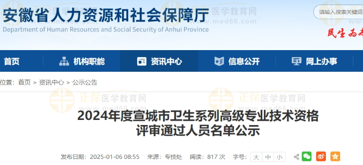 2024年度宣城市衛(wèi)生系列高級(jí)專業(yè)技術(shù)資格評(píng)審?fù)ㄟ^(guò)人員名單公示公布啦!醫(yī)學(xué)教育網(wǎng)整理具體內(nèi)容如下: