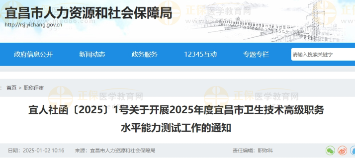 關(guān)于開展2025年度宜昌市衛(wèi)生技術(shù)高級職務(wù)水平能力測試工作的通知公布啦!醫(yī)學(xué)教育網(wǎng)整理具體內(nèi)容如下:
