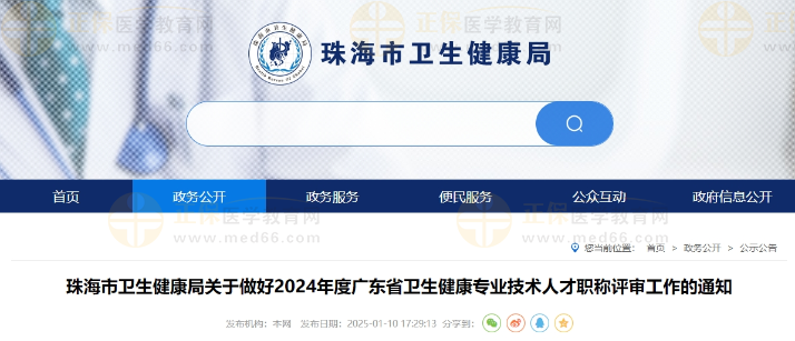 珠海市衛(wèi)生健康局關(guān)于做好2024年度廣東省衛(wèi)生健康專業(yè)技術(shù)人才職稱評審工作的通知公布啦!醫(yī)學(xué)教育網(wǎng)整理具體內(nèi)容如下: