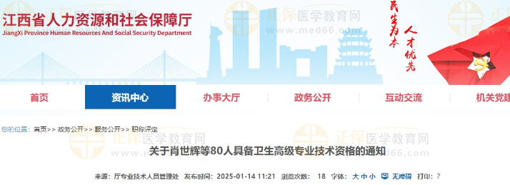 江西省關(guān)于肖世輝等80人具備衛(wèi)生高級專業(yè)技術(shù)資格的通知公布啦!醫(yī)學(xué)教育網(wǎng)整理具體內(nèi)容如下: