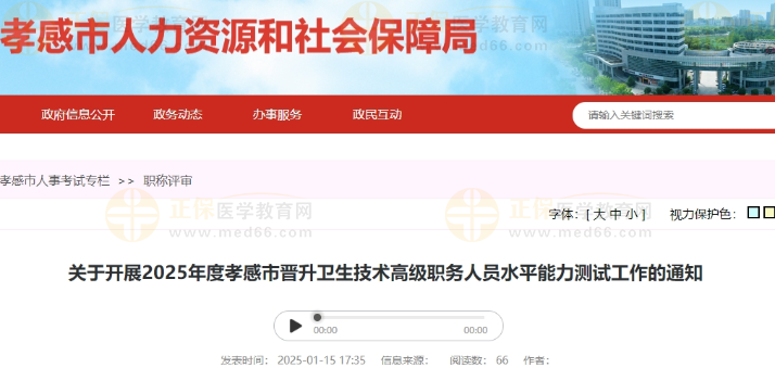 關(guān)于開(kāi)展2025年度孝感市晉升衛(wèi)生技術(shù)高級(jí)職務(wù)人員水平能力測(cè)試工作的通知公布啦!醫(yī)學(xué)教育網(wǎng)整理具體內(nèi)容如下: