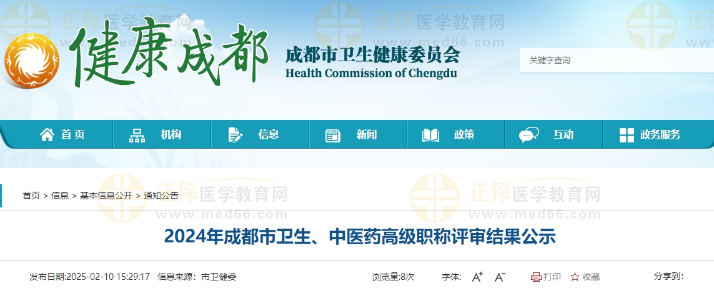 2024年成都市衛(wèi)生、中醫(yī)藥高級(jí)職稱(chēng)評(píng)審結(jié)果公示公布啦!醫(yī)學(xué)教育網(wǎng)整理具體內(nèi)容如下: