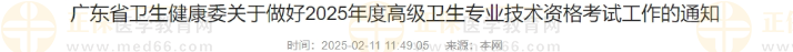 廣東省衛(wèi)生健康委關(guān)于做好2025年度高級衛(wèi)生專業(yè)技術(shù)資格考試工作的通知公布啦!醫(yī)學(xué)教育網(wǎng)整理具體內(nèi)容如下: