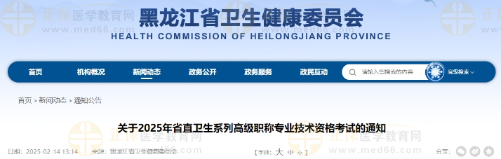 黑龍江衛(wèi)生健康委員會(huì)發(fā)布關(guān)于2025年省直衛(wèi)生系列高級(jí)職稱專業(yè)技術(shù)資格考試的通知,醫(yī)學(xué)教育網(wǎng)整理具體內(nèi)容如下: