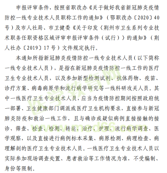 更多內(nèi)容,可以點(diǎn)擊查看附件:2020年湖北荊州衛(wèi)生高級(jí)職稱任職資格評(píng)審材料申報(bào)通知