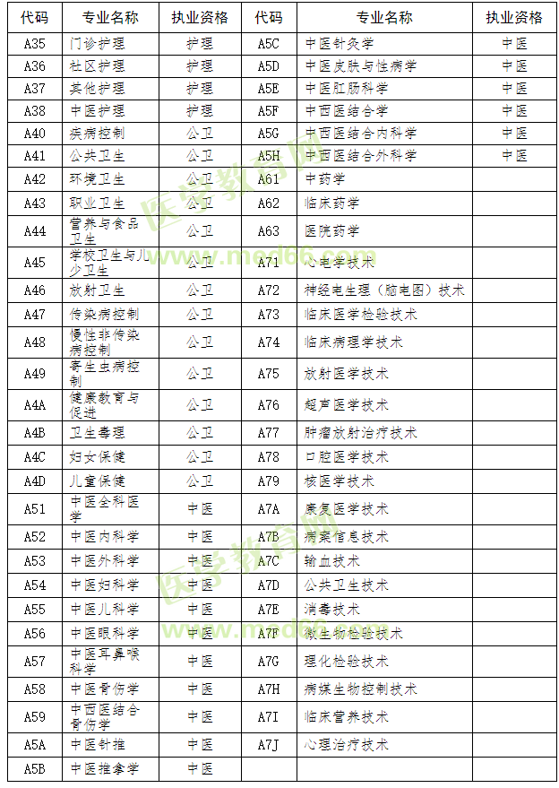 山東省衛(wèi)生高級專業(yè)技術(shù)職務資格評審專業(yè)目錄: