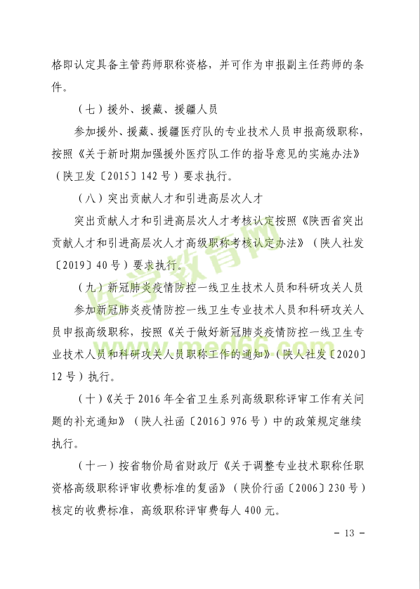 以上就是“陜西開展2020年度全省衛(wèi)生系列高級職稱評審工作的通知”的全部內(nèi)容,由醫(yī)學教育網(wǎng)搜集提供。更多考試動態(tài)、考試輔導內(nèi)容請繼續(xù)關注此欄目。