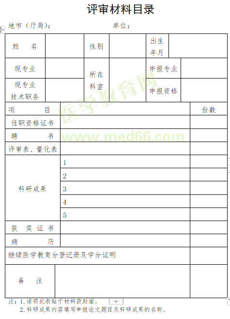 2020年陜西省衛(wèi)生高級(jí)職稱評(píng)審材料目錄下載入口:評(píng)審材料目錄