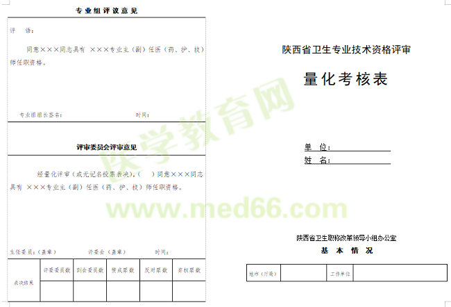 2020年陜西省衛(wèi)生專業(yè)技術(shù)資格評(píng)審量化考核表在哪能下載?為解決各位考生需求,醫(yī)學(xué)教育網(wǎng)小編整理官方內(nèi)容如下: