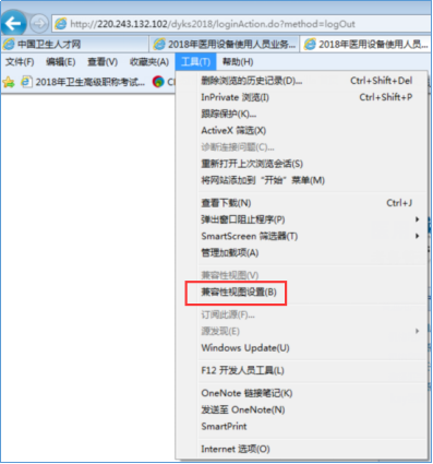 在IE瀏覽器左上角或右上角工具—操作欄中,進行兼容性視圖設(shè)置操作