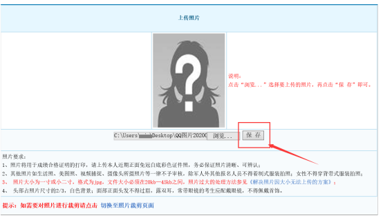 3.上傳照片,點擊“保存”按鈕后系統(tǒng)無反應(yīng),無法上傳。
