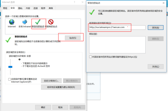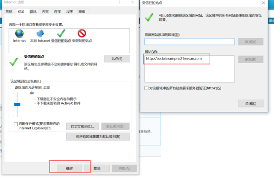 添加受信任的站點后,點擊“安全”頁面的“確認”按鈕。